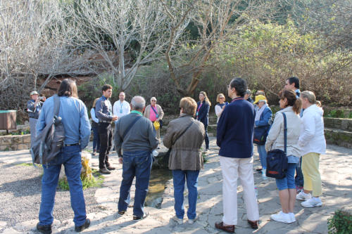 Viaje a Tierra Santa marzo 2017, parroquias de Alalpardo y Valdeolmos. “Un antes y un después en nuestras vidas: peregrinar a Tierra Santa, profundizar en la experiencia del encuentro con Dios, sentirnos Comunidad dentro de una Iglesia que es grande y que es Madre, conocernos más y mejor a nosotros mismos, compartir con los hermanos la amistad, la vida, la fe, dejar al Señor cambiar nuestro corazón, comprender mejor el Evangelio tras conocer aquellos caminos, poner cara a tantas escenas y lugares... pasarlo bien y caminar juntos, junto al Señor que camina con nosotros” Mª Jesús García. Lo primero presentaros a nuestro guía José Antonio, responsable de que todo el viaje fuese un éxito. Estableció un régimen de horarios sin posibilidad de discusión, que nos ayudó a estar todos atentos a cumplir con el plan diario establecido, de este modo llegamos a visitar todos los lugares, en la mayoría de los casos con comodidad y sin aglomeraciones. En cada uno de los lugares nos explicaba su contenido histórico y espiritual, lo que nos enriqueció mucho el conocimiento de las visitas. Además, sus reflexiones espirituales en cada uno de los lugares fueron realmente aleccionadoras. José Antonio siempre nos tenía a todos conectados por un pinganillo azul, que no nos lo quitábamos ni para hacernos la foto... no vaya a ser que nos diese alguna instrucción importante. Primer día: Basílica de la Anunciación, en la planta baja se encuentra la gruta y en la parte superior con mucha más luz la iglesia, donde oímos la primera misa. Iglesia de San José, allí pudimos ver un baptisterio del siglo I o II de la comunidad judeocristiana, muy interesante los 7 escalones de bajada que simbolizan los siete cielos y 6 recuadros en el suelo que simbolizan los seis Ángeles que rodean al Hijo de Dios. Fuente de la Virgen, es una iglesia greco-ortodoxa, en la que se encuentra la fuente que abastece de agua a Nazaret, por lo que se puede pensar que la Virgen y Jesús se acercarían a esta fuente con frecuencia.  Caná. Los matrimonios que estuvimos, renovamos el compromiso matrimonial, el Padre Jaime fue el encargado de oficiar la ceremonia y ser testigo. Y para terminar este intenso día fuimos al Monte Tabor a visitar la Basílica de la Transfiguración que conmemora la transfiguración de Jesús en presencia de Pedro, Santiago y Juan. Subimos en unos pequeños autobuses, por una carretera estrecha y empinada, y en uno de los autobuses estuvimos acompañados por un grupo de nigerianos, que a pesar de que hacía buena temperatura  iban equipados con guantes y gorro. Por lo que nos dijo José Antonio, el gobierno de Nigeria subvenciona el viaje a Tierra Santa o a la Meca ( en caso de los musulmanes), igualito que en España....   Segundo día: Banias nacimiento del río Jordán, allí con el Padre Jaime renovamos el bautismo, esta vez con agua del río Jordán. Ya renovados, nos dirigimos a Cafarnaún a visitar la Casa de Pedro, y recordamos el episodio en el que desmontan el techo para bajar ante Jesús un paralítico, Mc 2,1-12. También estuvimos viendo  los restos de una sinagoga y casas del siglo I. Siguiente etapa, un paseo en barco por el Mar de Galilea, lugar donde se desarrollan muchos de los acontecimientos mostrados en el Evangelio. Allí, vimos una demostración de la pesca con trasmallo, bailamos y meditamos. El tiempo, con un sol espléndido, acompañó este maravilloso paseo. Después de comer en un restaurante junto al lago, nos dirigimos al monte de las bienaventuranzas, lugar donde se levanta una iglesia dedicada a las bienaventuranzas, allí tuvimos una misa al aire libre, bajo una “sofisticada” tejavana. Tabgha, 7 fuentes, construida en conmemoración a la multiplicación de los panes y los peces, también estuvimos en la capilla del primado de Pedro y en su playa, donde podría estar el muelle de pescadores de Cafarnaún.  A pesar de lo intenso del día, todavía tuvimos tiempo de salir a dar una vuelta  por el paseo del Lago, y tomarnos un té (porque camomila no había), algún refresco y ver dos coipús en las orillas. Tercer día: Baño en  el Mar Muerto, es el único mar en el que no te ahogas por inmersión porque ,aunque te cubra entero, la concentración tan elevada de sal te impide hundirte, sin embargo la entrada fangosa provocó más de una caída. Fue un auténtico placer el baño, con la temperatura del agua ideal, lo peor la cerveza de después del baño que hubo que tomarla en menos de 1 minuto porque el pinganillo empezaba a funcionar. Jericó, Tel es Sultán, visitamos los restos de la ciudad que datan del año 8.000 a.c., recordamos el episodio en el que Jesús entró en Jericó y se alojó en la casa de Zaqueo. Llegada a Jerusalén, misa en el Cenáculo donde el Padre Jaime y el Padre José Antonio renovaron las promesas sacerdotales. Lugar en el que Jesús celebró con sus discípulos la última cena. Basílica de la Dormición de la Virgen, en la cripta de planta circular se encuentra la representación de la Virgen yacente. Fue, especialmente emotivo  escuchar los cantos y rezos de un grupo de cristianos ortodoxos al rededor de la Virgen. San Pedro de In Gallicantu, donde se aprecian unas estupendas vistas de Jerusalén, en la cripta tres iconos que nos recuerdan la negación de Pedro y bajando encontramos la prisión de Cristo. Cuarto día y siguientes.
